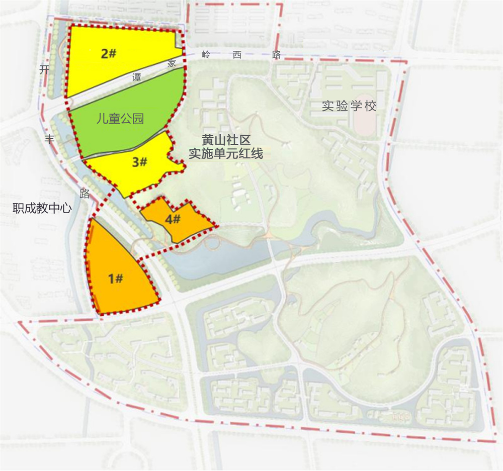 黃山未來社區由1#、2#、3#、4#地塊和兒童公園組成,總用地面積211575平方米、折合317.36畝(不包含兒童公園),總投資約95億元,配建教育、鄰里、創業、建筑等未來社區九大場景。
