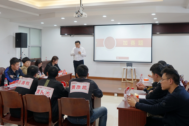 此次競賽試題以“學習強國”學習平臺題庫中的知識點為主要內容,分為必答題、搶答題兩部分。比賽現(xiàn)場,選手們精神飽滿、發(fā)揮出色,沉著應對每一道問題,比分不相上下,精彩的抗衡掀起陣陣小高潮,既體現(xiàn)個人風采,又展現(xiàn)出團隊合作精神。