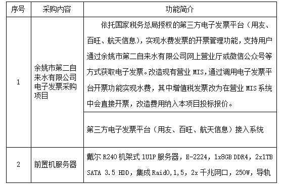 二、項目名稱:余姚市第二自來水有限公司電子發票采購項目